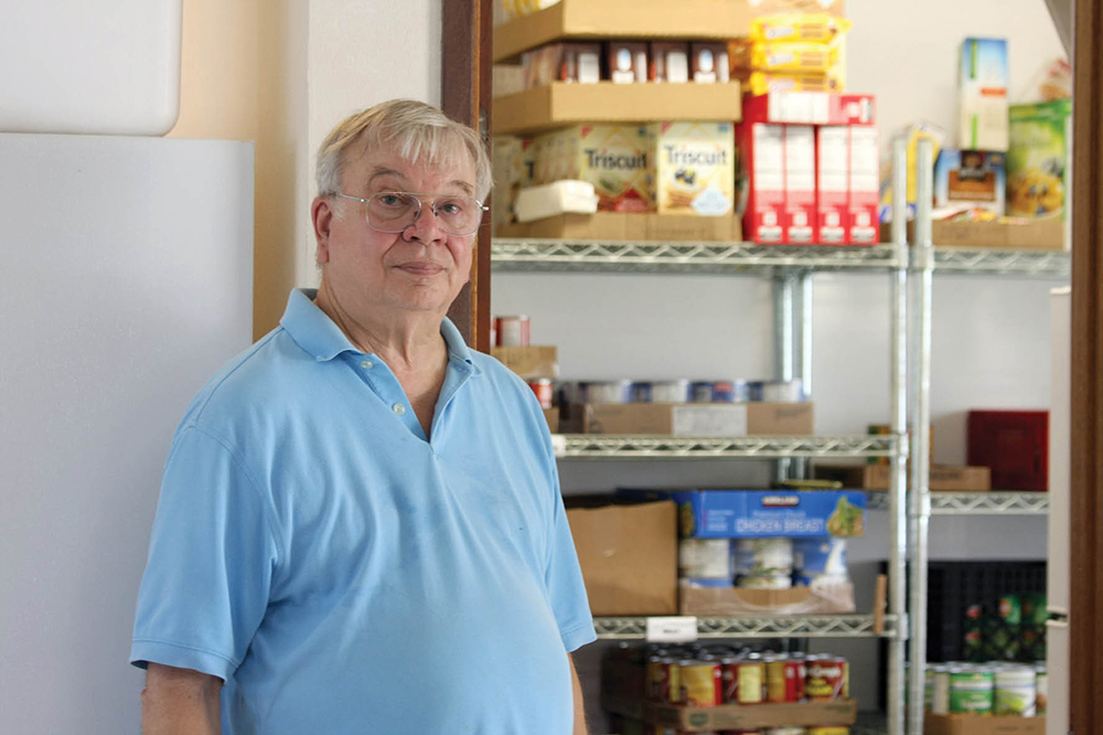 Sam Knepper, the stewardship coordinator for St. Catherine Parish in Kapaa, stands at the door of St. William Mission food pantry in Hanalei June 16. (HCH photo by Anna Weaver)