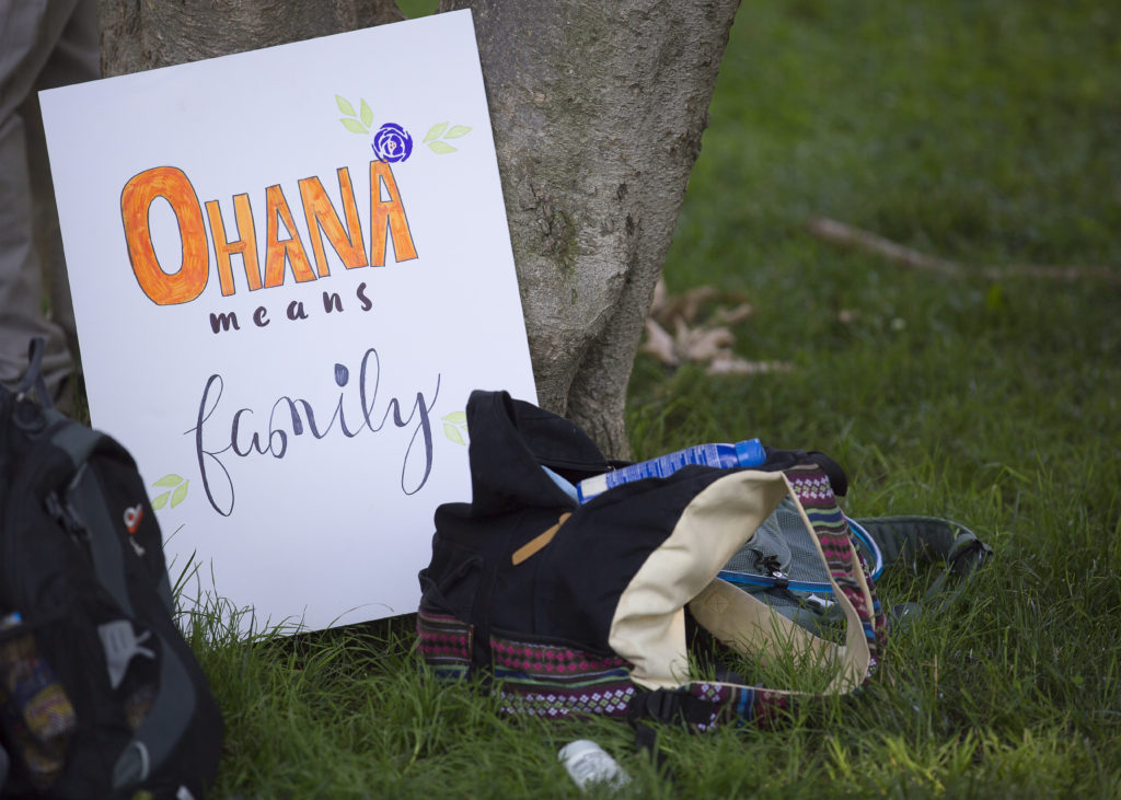 A placard with the Hawaiian word “Ohana” is seen in Washington during a national day of action called “Keep Families Together” June 30. (CNS photo/Tyler Orsburn)