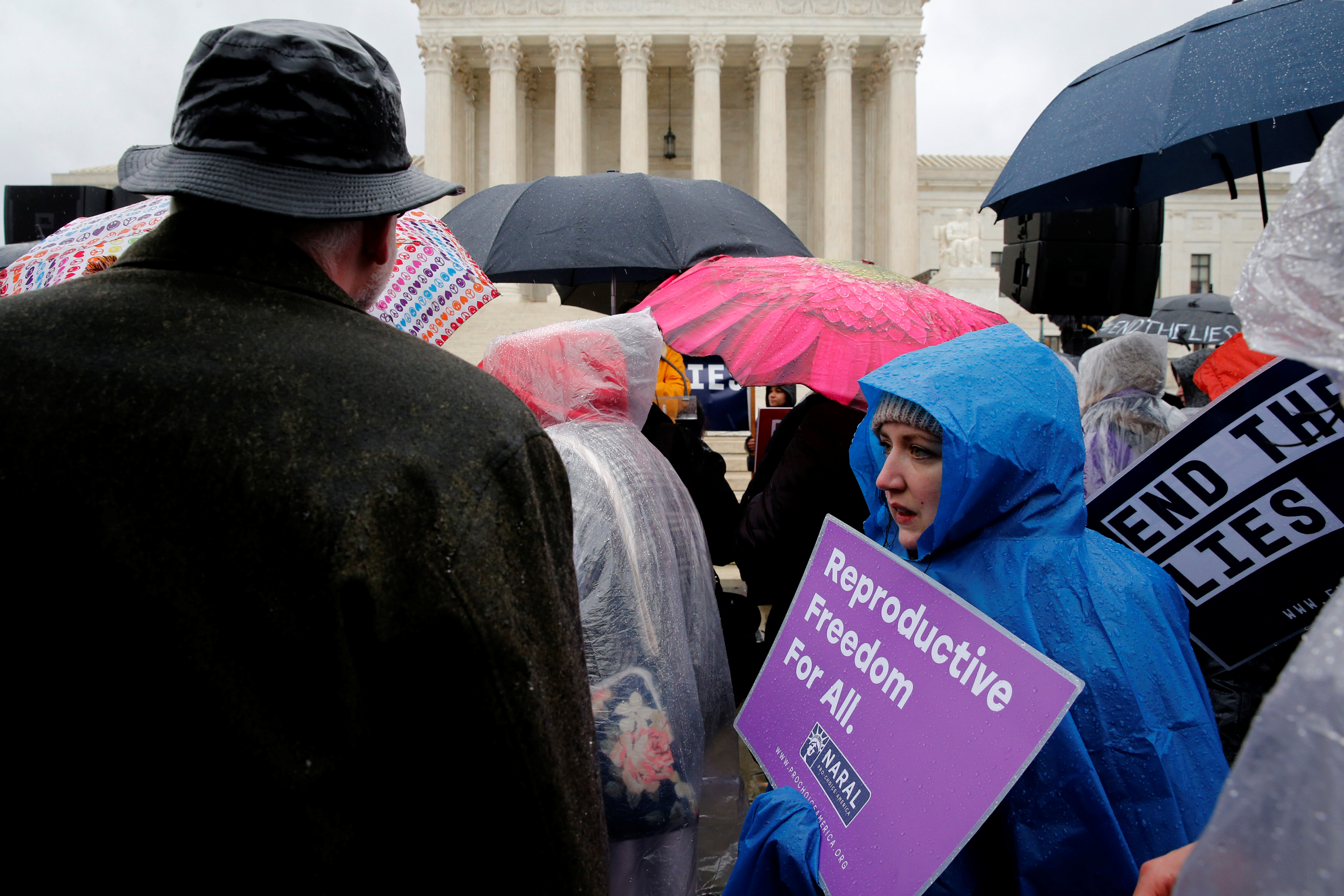 Pro-life advocates and a counter-demonstrator gather March 20 outside the U.S. Supreme Court in Washington as the court hears oral arguments in NIFLA v. Becerra, a case about freedom of speech at crisis pregnancy centers. (CNS photo/Jonathan Ernst, Reuters)