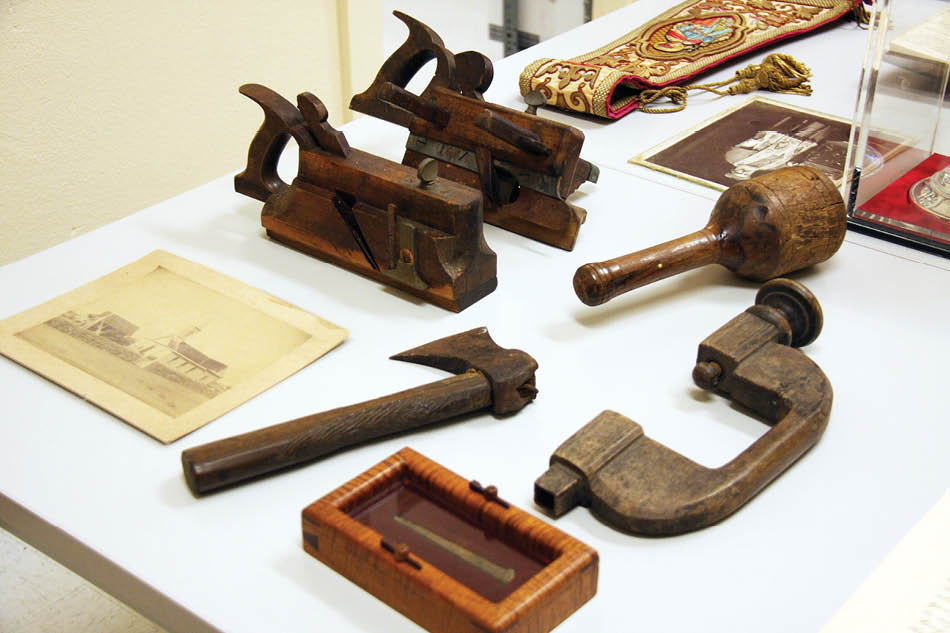 Of note in the collection are many objects connected to perhaps the most famous member of the Sacred Hearts congregation, St. Damien of Molokai. Housed there are, for example, Father Damien’s pipe, glasses, woodworking tools, prie-dieu (prayer kneeler), chalice and one of his chasubles.
