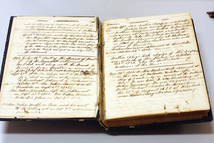 In the collection are scrapbooks and rare manuscripts, including from the first Catholic mission press. There are also general interest books plus records of where priests and brothers are buried, photographs of clergy and religious, and also personnel records that aren’t public.