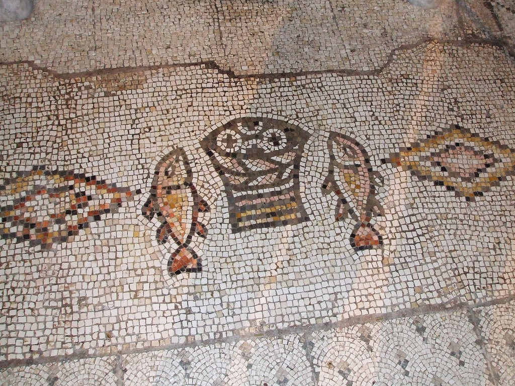 Mosaic of The Church of the Multiplication of the Loaves and Fish in Tabgha, Israel. Photo: Caleb Zahnd