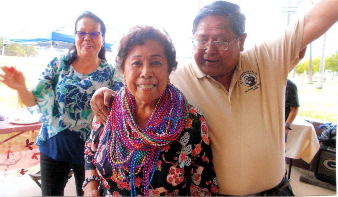 Cathy Galvez, winner of the “rock paper scissor” game at the Oahu Council of Filipino Catholic Clubs annual field day July 15 at the NAVFAC Ball Field, is congratulated by Amy Jodar and Ben Cabreros. The event for the Oahu council, which represents 10 parish clubs, included an outdoor Mass, a potluck meal and lots of fun games, including “rock paper scissors,” a hilarious physical game of elimination; Bible trivia; a water game; a blindfolded animal sound group competition; and a raffle. The objective of the field day is for the membership to get together and get to know each other with no discussion of business. The outdoor Mass adds a feeling of spiritual growth as one big family. It was a pleasant and joyful day, according to organizers. (Photo courtesy of Pacita Baron)