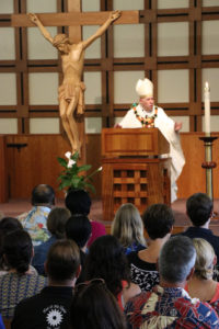At the opening Mass for the Hawaii Catholic school year, Bishop Larry Silva focused his homily on shoring up the Christian bedrock.