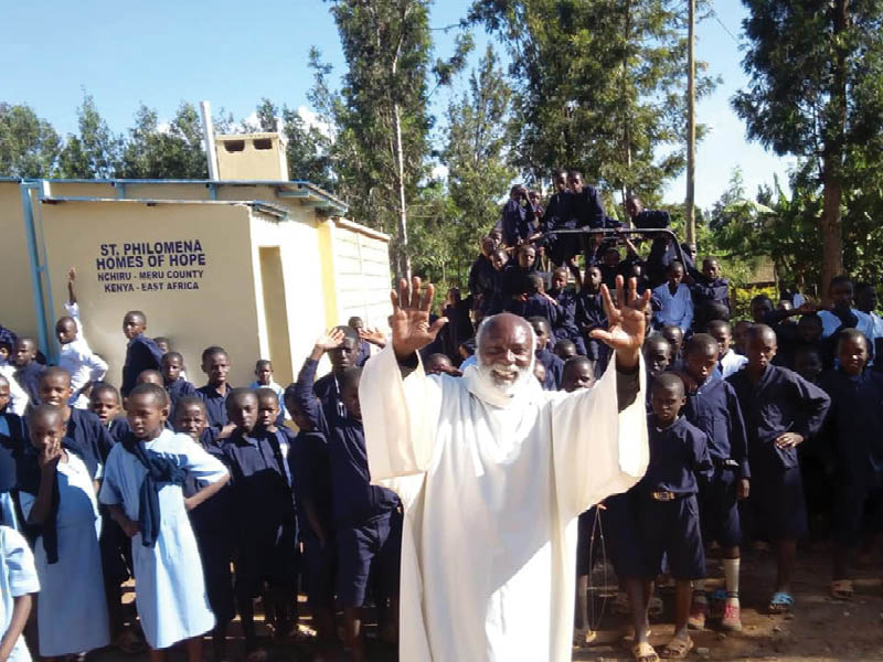 The bearded priest was born in northern Tanzania and later came to Kenya, where he attended high school and went to St. Thomas Aquinas Seminary in Nairobi. Two decades ago, he began his mission with seven street children. Today, more than 2,000 orphaned children live in Meru’s Children’s Village, which he founded. Thousands more have left and now attend universities or work throughout the East African country.
