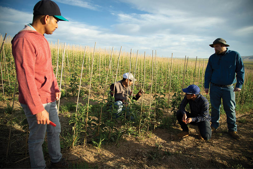 When Sanchez and the seven other seminarians and interns (those still discerning religious life) arrived at the orchard for their first day on the job, they were handed trimming tools by the foreman and directed to join the Latino migrant workers in the field to prune the rows of young apple trees.