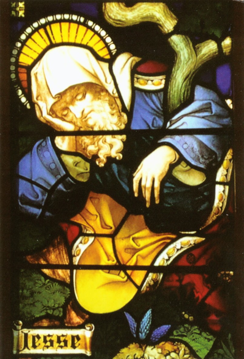 Detail of a stained glass window in an unidentified church in Hove, Sussex, England, representing the Tree of Jesse