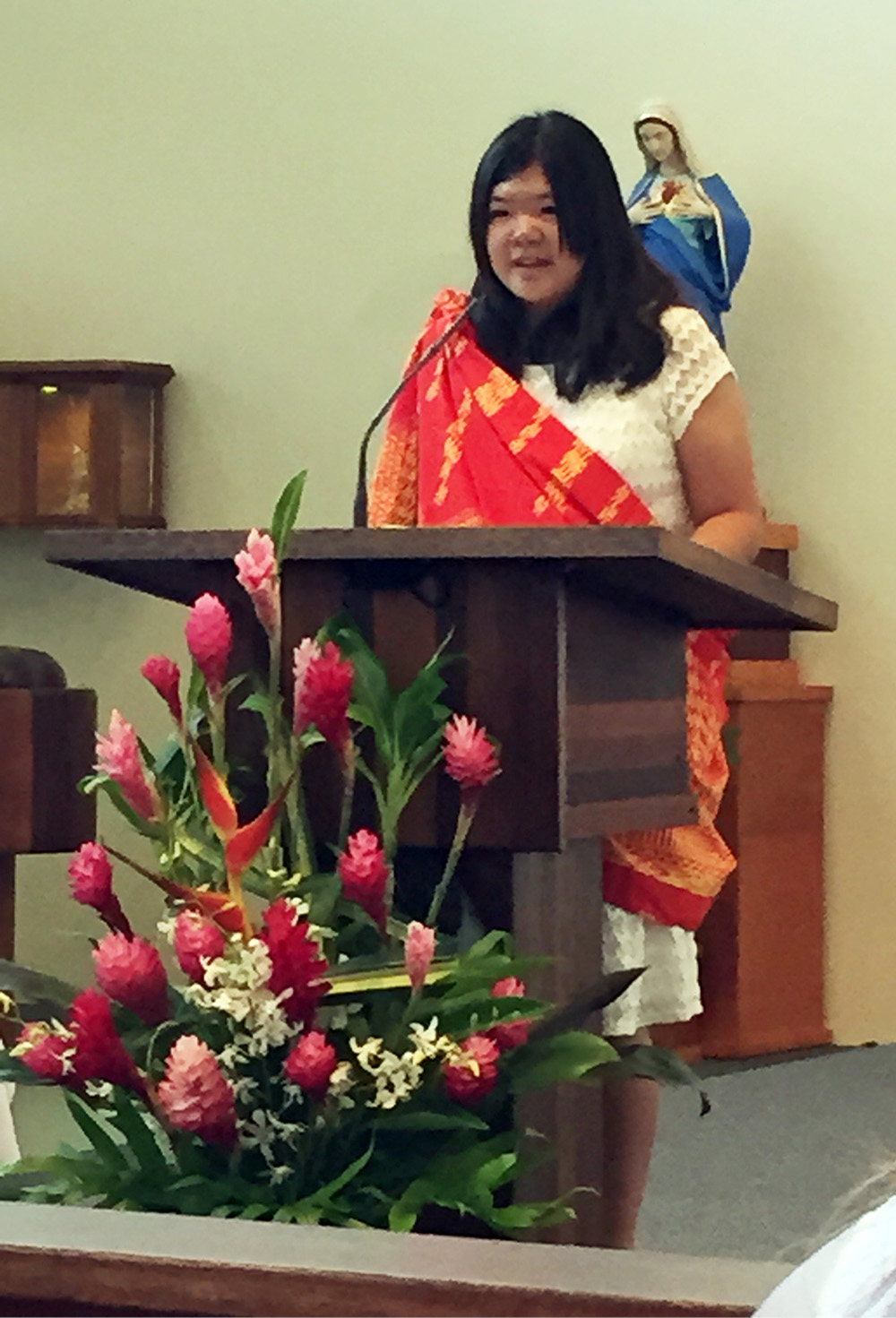 Kacie Yamamoto reading from the pulpit at St. Stephen Church on her Confirmation day. (Photo courtesy of Kacie Yamamoto)