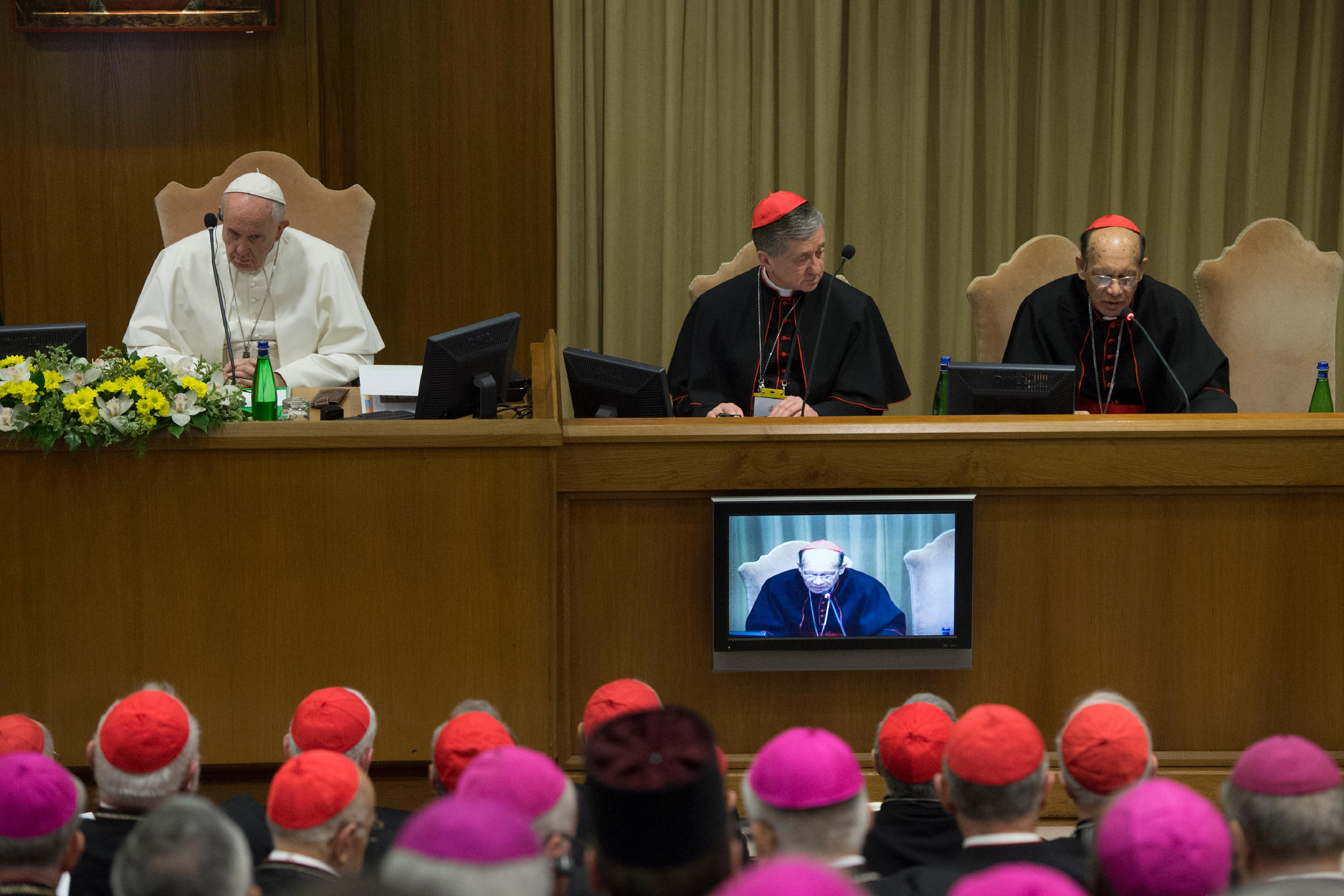 Pope Francis is seen Feb. 22, 2019, the second day of the Vatican meeting on the protection of minors. (CNS photo/Vatican Media via Reuters)
