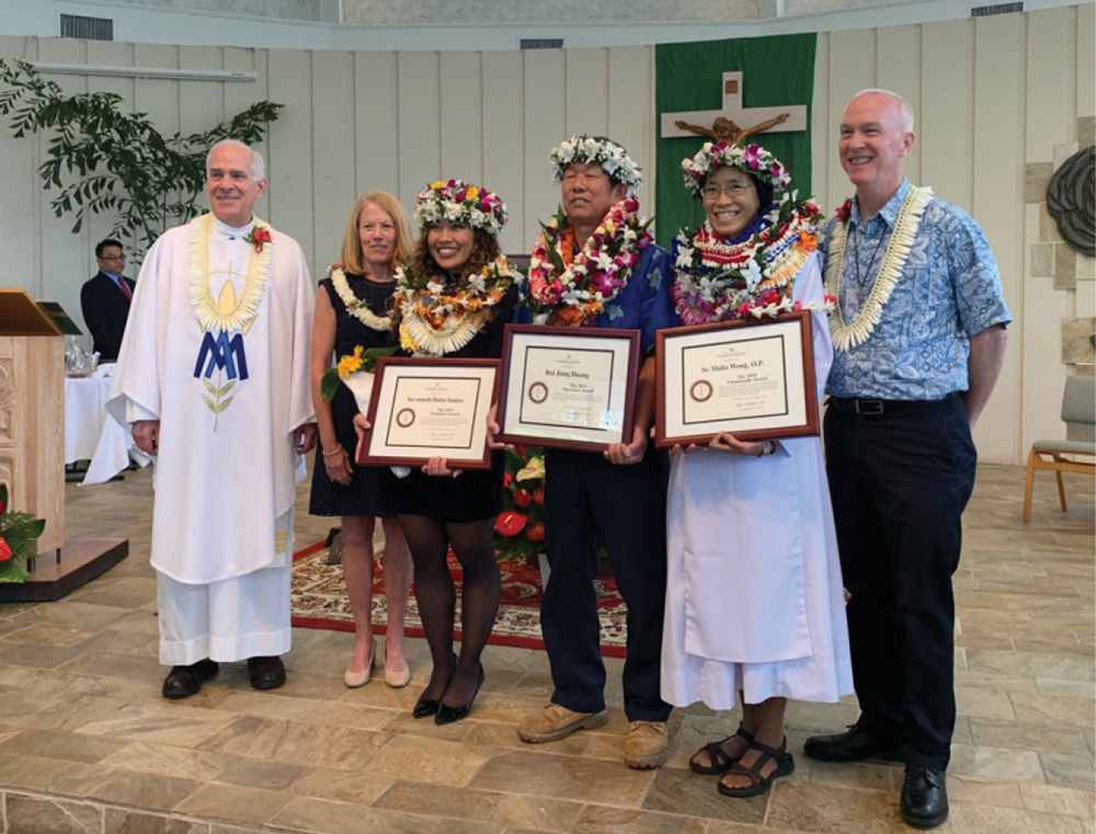 Chaminade University of Honolulu honored three in its community with its annual Marianist Heritage Awards during Mass on Jan. 23. Classes were cancelled for 50 minutes that day during the time of the Mass so that people could attend.