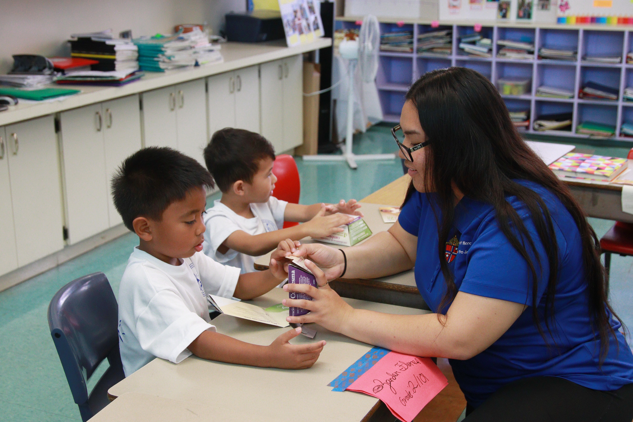 The students in the religious education program at the Co-Cathedral of St. Theresa in Honolulu received CRS Rice Bowls on March 3 in preparation for the upcoming season of Lent. Photo: Dann Ebina