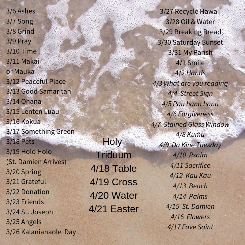 I’ve created a Hawaii version inspired by Busted Halo’s InstaLent challenge. The goal is to post a daily image to your Instagram account that represents the word of the day.