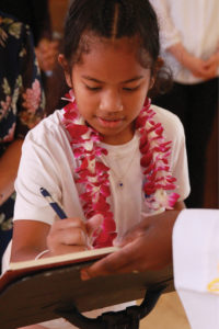 Oahu catechumens gathered at the Co-Cathedral of St. Theresa in Honolulu on March 10 for the Rite of Election. Each catechumen signs the Book of the Elect as they prepare to enter the Catholic Church this Easter. Similar Rites of Election were held on the Big Island, Kauai, Oahu and Maui.