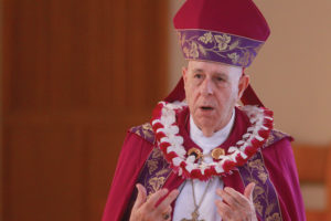 In his homily, Bishop Larry Silva said the catechumens are an inspiration to all of the faithful in that they look beyond the Catholic Church’s current trials and can see the beauty and fullness that the Catholic faith has to offer. (Photos courtesy of Dann Ebina)