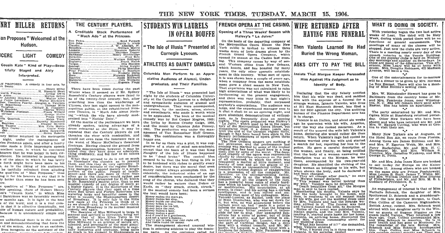 The headline of a 483-word story in the March 15, 1904, edition of The New York Times bore a sly nod to Tom Sawyer. A man named Ignacio Valente was charging the city with a funeral bill he had been wrongfully issued, according to the Times.