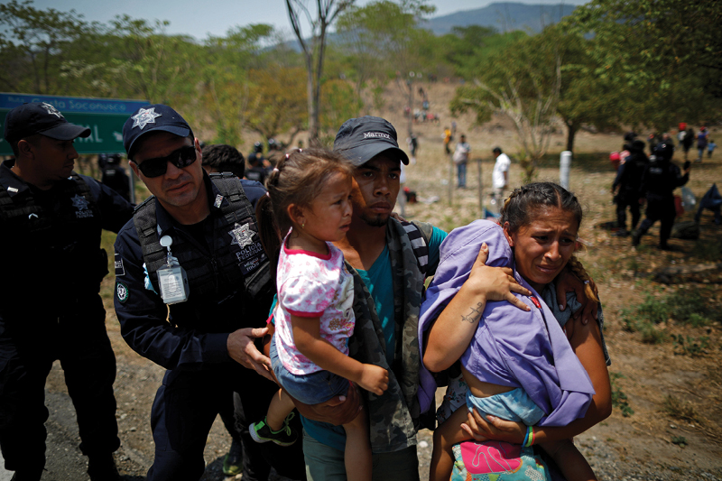 A family of Central American migrants is detained by Mexican federal police officers April 22, in Pijijiapan, Mexico, during their journey toward the U.S. (CNS photo/Jose Cabezas, Reuters)