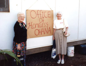 Guild members Julie Braig, left, and Pat Desonier at the organization’s drop-in center for the homeless in Nanakuli. (HCH file photo)