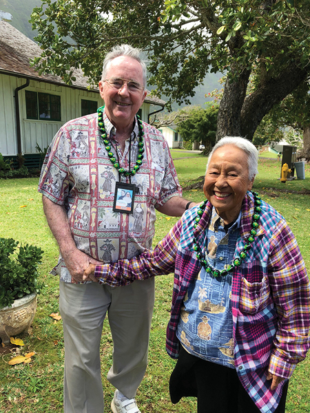 Kalaupapa historian Pat Boland with resident-patient Meli Watanuki. (HCH photo | Anna Weaver)