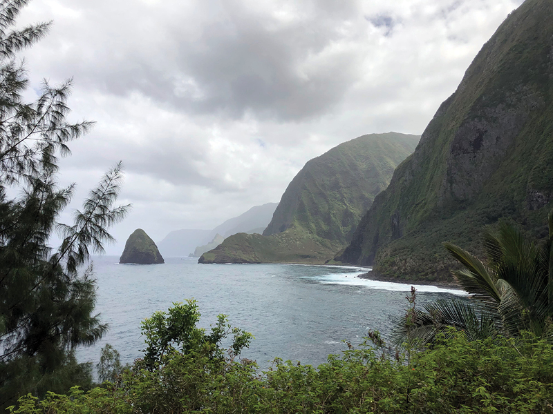 The view of Kalawao cove and Okala, Mokapu and Huelo islands as seen from the picnic area in Kalawao. (HCH photo | Anna Weaver)