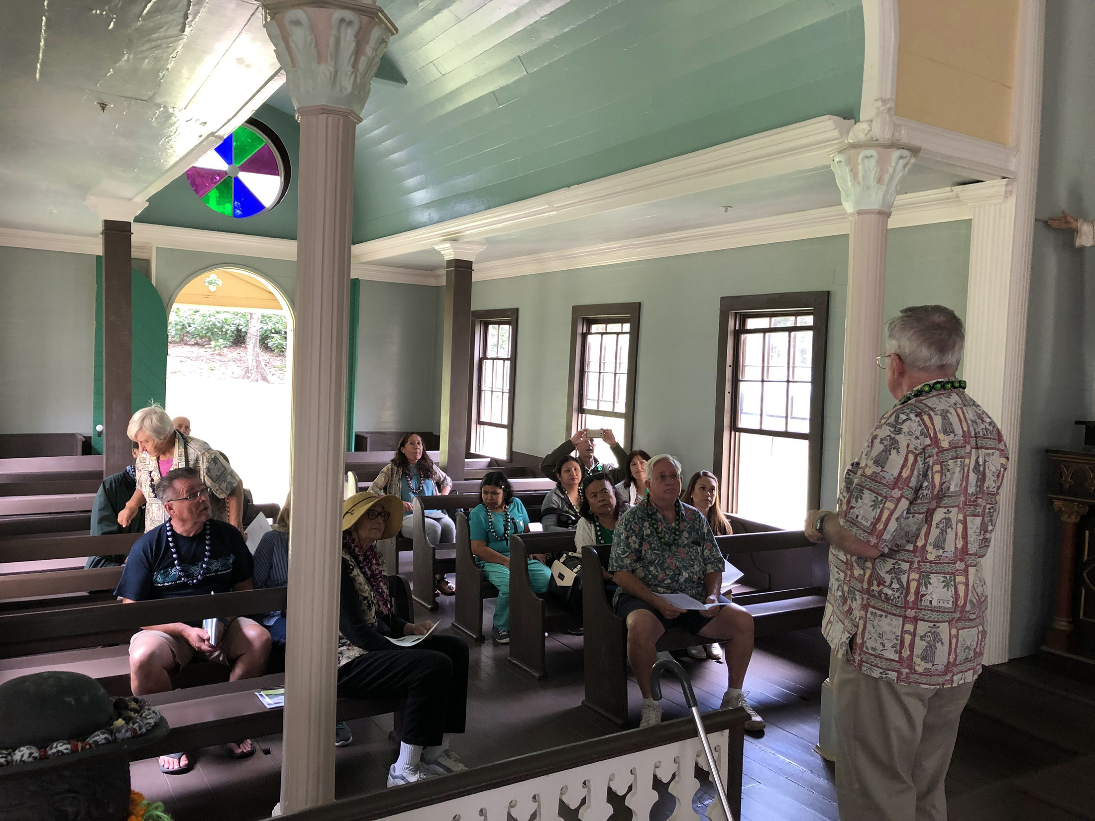 Kalaupapa historian Pat Boland helped co-lead the tour. Sisters of St. Francis of the Neumann Communities Alicia Damien Lau and Barbara Jean Wajda, who live in Kalaupapa, helped keep things running smoothly.