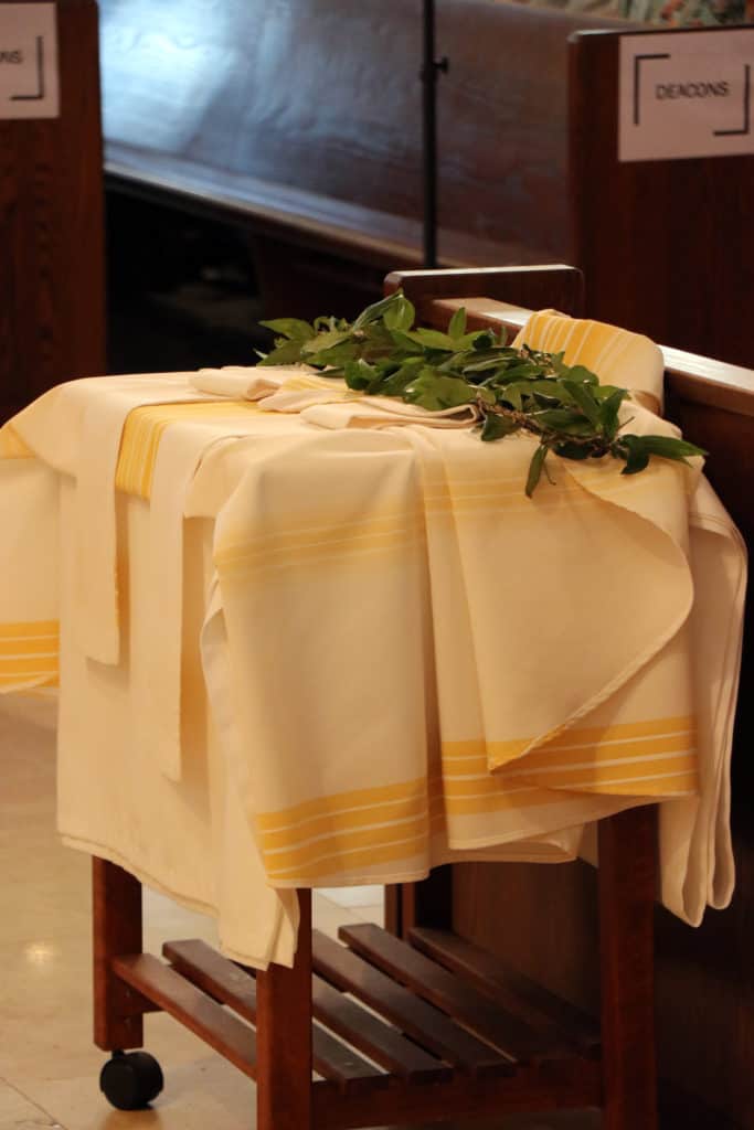 The bishop then passed to the new priests the bread and wine that would be used for the Mass, symbolizing their authority to celebrate the Eucharist.