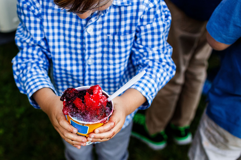 We mull over the choices: watermelon, cherry, bubblegum, blueberry. Everyone rejects the gummy bears. The line is at a standstill. I try to find shade from the relentless sun and chat with friendly moms.