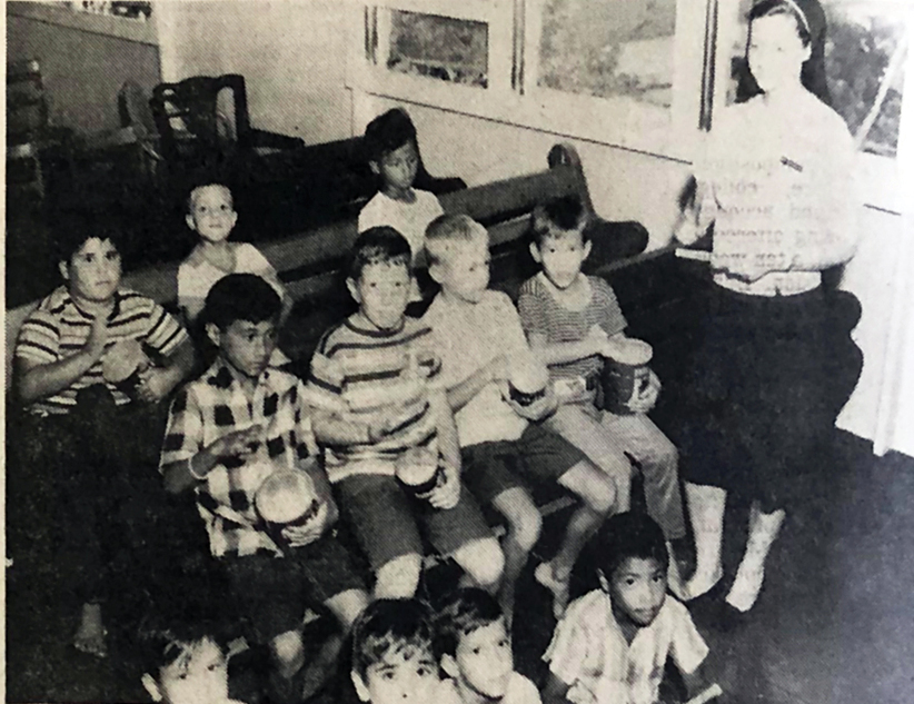 Left, there is a bunch of happy youngsters breaking the solitude of the former Sacred Hearts Seminary in Hauula. These are the campers enjoying the vacation filled with recreation religious education, and arts and crafts. …