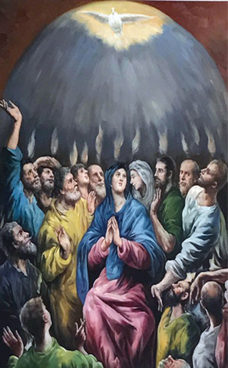 Every Sunday at 10 a.m. at Blessed Sacrament Parish in Pauoa Valley, Mass is celebrated in the “extraordinary form,” also known as the Tridentine or Latin Mass, the liturgy used prior to the renewal of the Second Vatican Council. The celebrant is the pastor Father Steve Nguyen. With Bishop Larry Silva’s permission and the pastor’s direction, parishioner Rick Fucini built a modest, high altar and a portable communion rail and bought four oil paintings for the sanctuary. “These enhancements foster an environment suitable for saying the Latin Mass, which continues to be well attended,” said Fucini. Pictured is one of the paintings, a reproduction of El Greco’s “Pentecost.” (Photo courtesy of Rick Fucini)