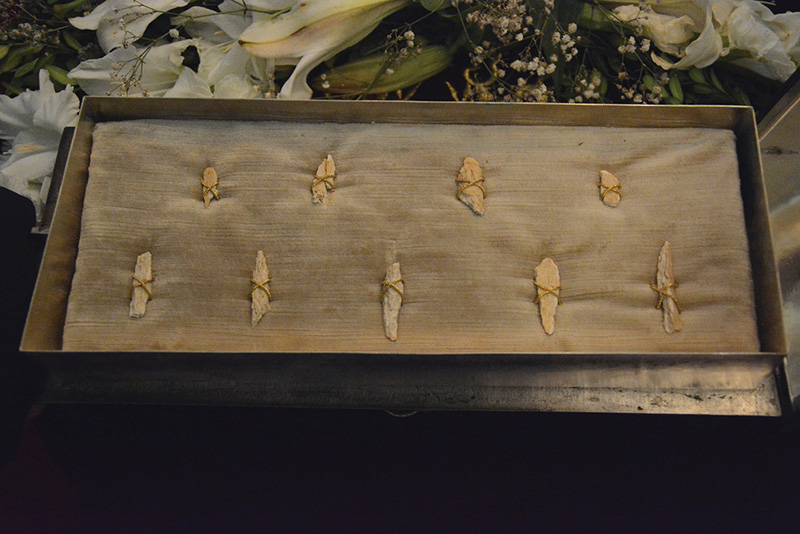 The bronze case contains nine of the bone fragments discovered during excavations of the necropolis under St. Peter’s Basilica that began in the 1940s.