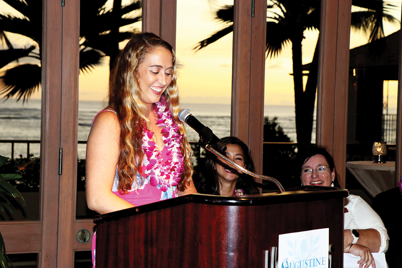 This year’s featured speakers were Chantelle Luarca, the principal of Our Lady of Good Counsel in Pearl City, and Brie Haner, a fourth grade teacher at the school. The pair shared how a “smart classroom” grant that came through the Augustine Educational Foundation has helped their “little blue school.”