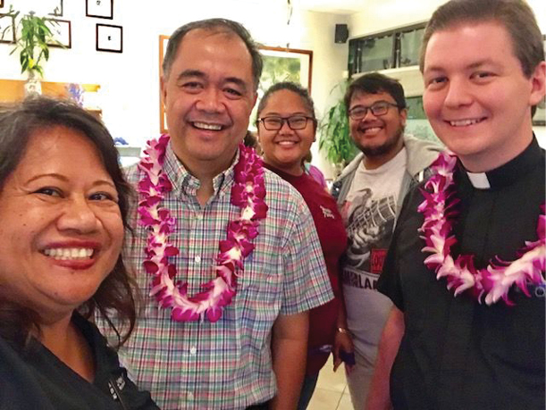 In July, St. Michael Parish in Waialua welcomed its new pastor, Father Ernie Juarez Jr., who was previously at Our Lady of Good Counsel in Pearl City. The parishioners welcomed their new priest with open arms. At his first meeting, the officers and members of the parish Filipino Catholic Club welcomed Father Juarez with a lei and lots of jubilant smiles. He is excited to be on this new journey and everyone is eager to see the great things he will do for the parish and school.