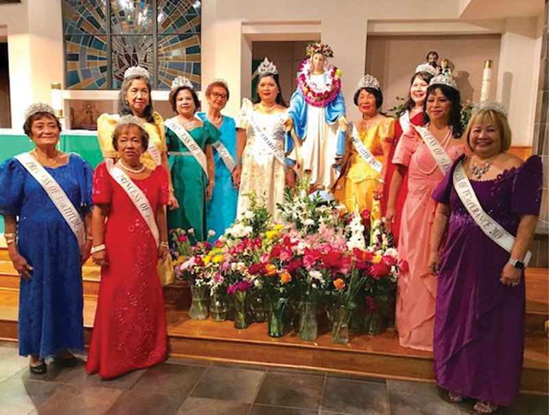 The Filipino Catholic Clubs’ Queen of Charity Pageant was hosted Sept. 7 by the first place parish, St. Joseph in Waipahu. Each parish was represented by a member of the Filipino Catholic Club. Flordeliza Garcia, from St. Joseph, was the Queen of Charity. Olivia Mita, from Our Lady of the Mount, was the Princess of Hope. Monica Dicion, from St. Michael, was the Princess of Faith. Amelia Yadao, from Our Lady of Perpetual Help, was the Princess of Justice. Estrella Calamayan, from St. Anthony in Kalihi, was the Princess of Prudence. Helen Naval, from Sacred Heart, was the Princess of Fortitude. Gloria Villapando, from St. Jude, was the Princess of Temperance. Jean Tiano, from the Co-Cathedral of St. Theresa, was the Princess of Peace. Nancy Manuel, from St. Roch, was the Princess of Freedom. Valerie Dascil-Tago, from Our Lady of Sorrows, was the Princess of Wisdom. The pageant is the Filipino Catholic Clubs largest parish-oriented event. Thanks to this fundraiser six student scholarships were awarded this year.