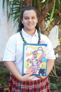 Olivia Tupou, seventh grader at St. Ann School, Kaneohe, the first place winner in the sixth-eighth grade category with her artwork “Vocation Path.”