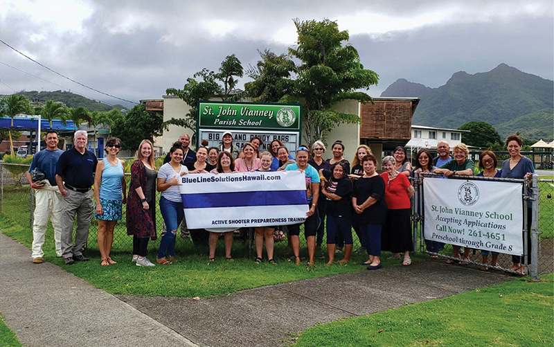 The faculty and staff of St. John Vianney School in Kailua were privileged to attend an all-day emergency response training Oct. 29 provided by Blue Line Solutions, an organization comprised of an elite team of experts from local law enforcement units that prepares schools and other organizations for a variety of security threats and emergencies.