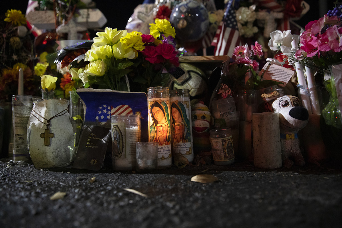 A memorial in El Paso, Texas, is seen near the site of the Aug. 3, 2019, Walmart mass shooting during a visit by U.S. bishops and others Sept. 26. The visit to the memorial came during a pastoral encounter by U.S. bishops with migrants at the border. The Sept. 23-27 pastoral visit, sponsored by various offices of the U.S. Conference of Catholic Bishops and other national organizations, aimed to highlight the church’s ministry to migrants, the border conditions and immigration laws affecting them, and their material and spiritual needs. (CNS photo/Tyler Orsburn)
