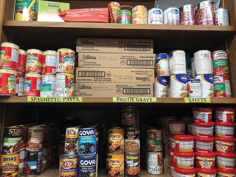 One of the food pantry cupboards at St. John the Baptist Parish in Kalihi. (HCH Photo | Anna Weaver)