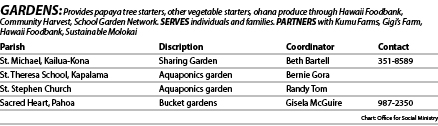Tamashiro said St. Michael Parish in Kailua-Kona, has “an unbelievable garden” in nearby Holualoa, which produces enough food to share with Annunciation Parish up north in Waimea, and two diocese-affiliated HOPE Services Hawaii housing projects. They call it, fittingly, the Sharing Garden.