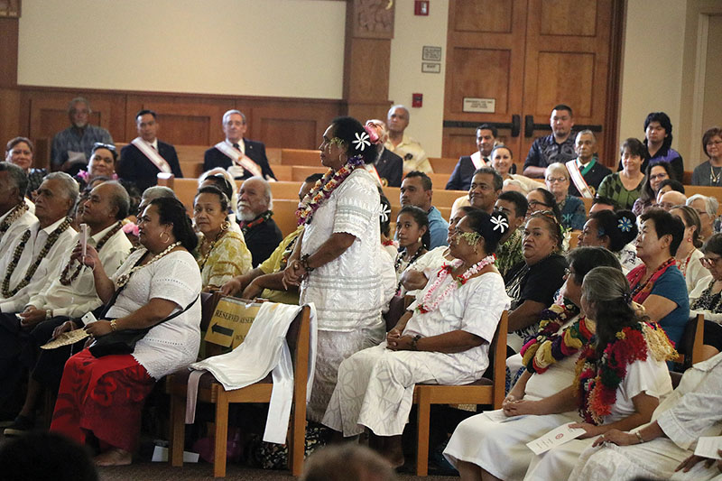 Father Niuliki’s mother, Pelenatita, was asked to stand and be recognized by Father Gomes in his closing remarks at the Nov. 23 Mass. Her husband, Setelo, passed away in 2016. (HCH Photo | Anna Weaver)