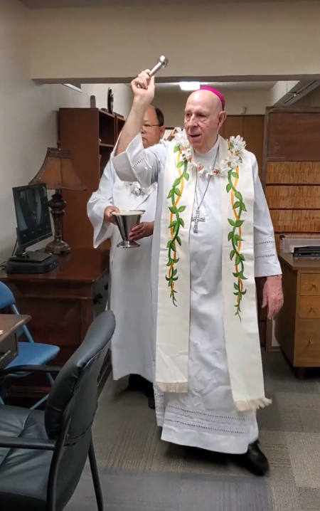 The Pearson Foundation of Hawaii officially dedicated Pearson Place on Dec. 8. The new pregnancy resource center in downtown Honolulu offers free pregnancy tests, support and counseling. Bishop Larry Silva led a short prayer service and blessing of the facility space, and a reception followed. The center is above Pauline Books and Media on Bishop Street. Pearson foundation president Susan Duffy said the foundation felt it was important to have a presence in downtown. The new center is now the sole Pearson location. (HCH photo | Anna Weaver) (Courtesy Lisa Kroll)