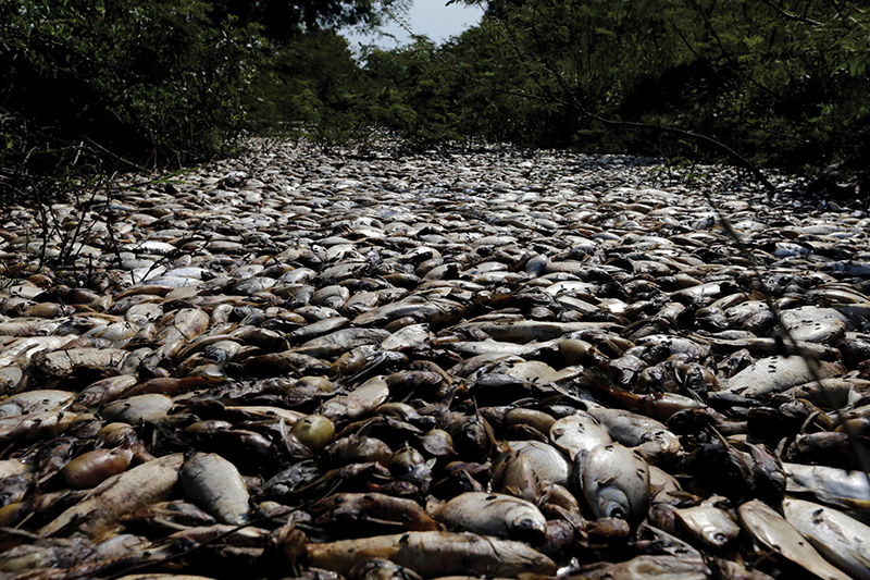 Dead fish float on the Confuso River in Villa Hayes, Paraguay, in this 2017 file photo. Pope Francis announced in 2019 that the Catechism of the Catholic Church would be updated to include a definition of “ecological sin.” (CNS photo/Jorge Adorno, Reuters)