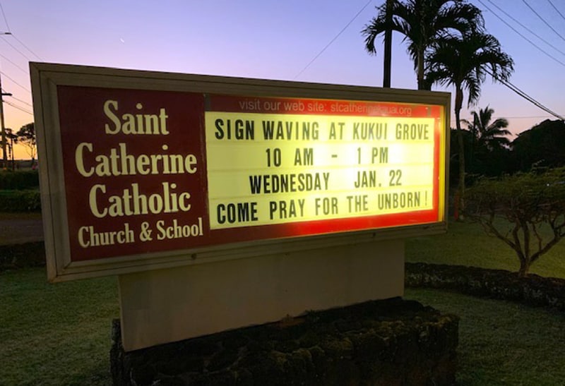 St. George Church in Waimanalo held a living rosary prayer service in support of life on Jan. 22. Parishioners said the rosary, recited a novena to St. Marianne Cope and waved pro-life signs.