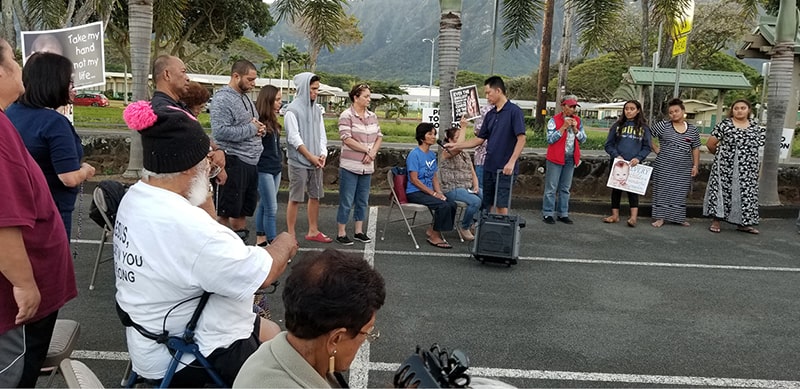 Children joined parents and grandparents to hold signs and wave at the passing cars. There was lots of friendly horn honking, and plenty of shakas. Many recited the rosary. Some came from a local Baptist church, a powerful testament to interfaith solidarity for this important cause.