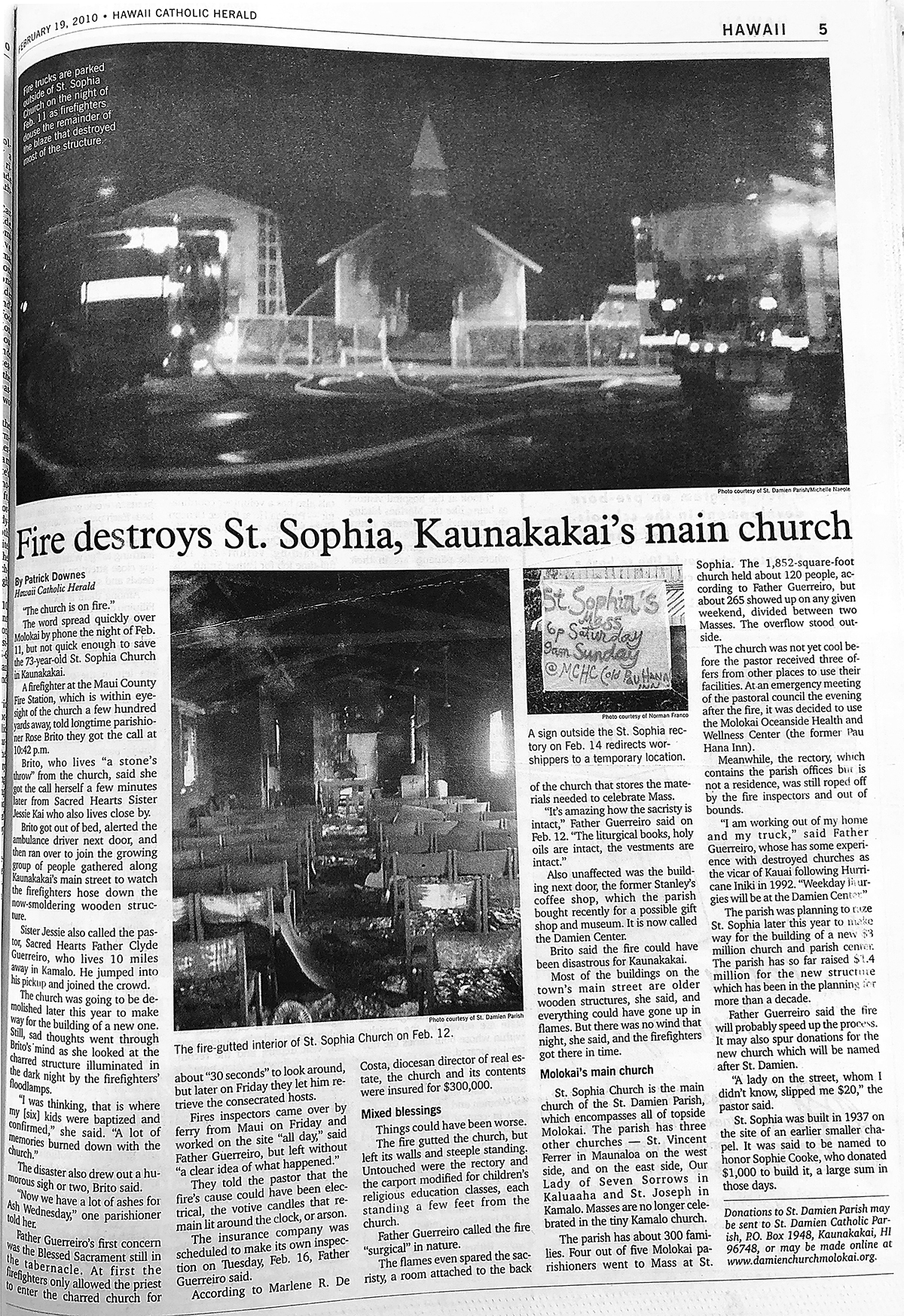 The word spread quickly over Molokai by phone the night of Feb. 11, but not quick enough to save the 73-year-old St. Sophia Church in Kaunakakai. …