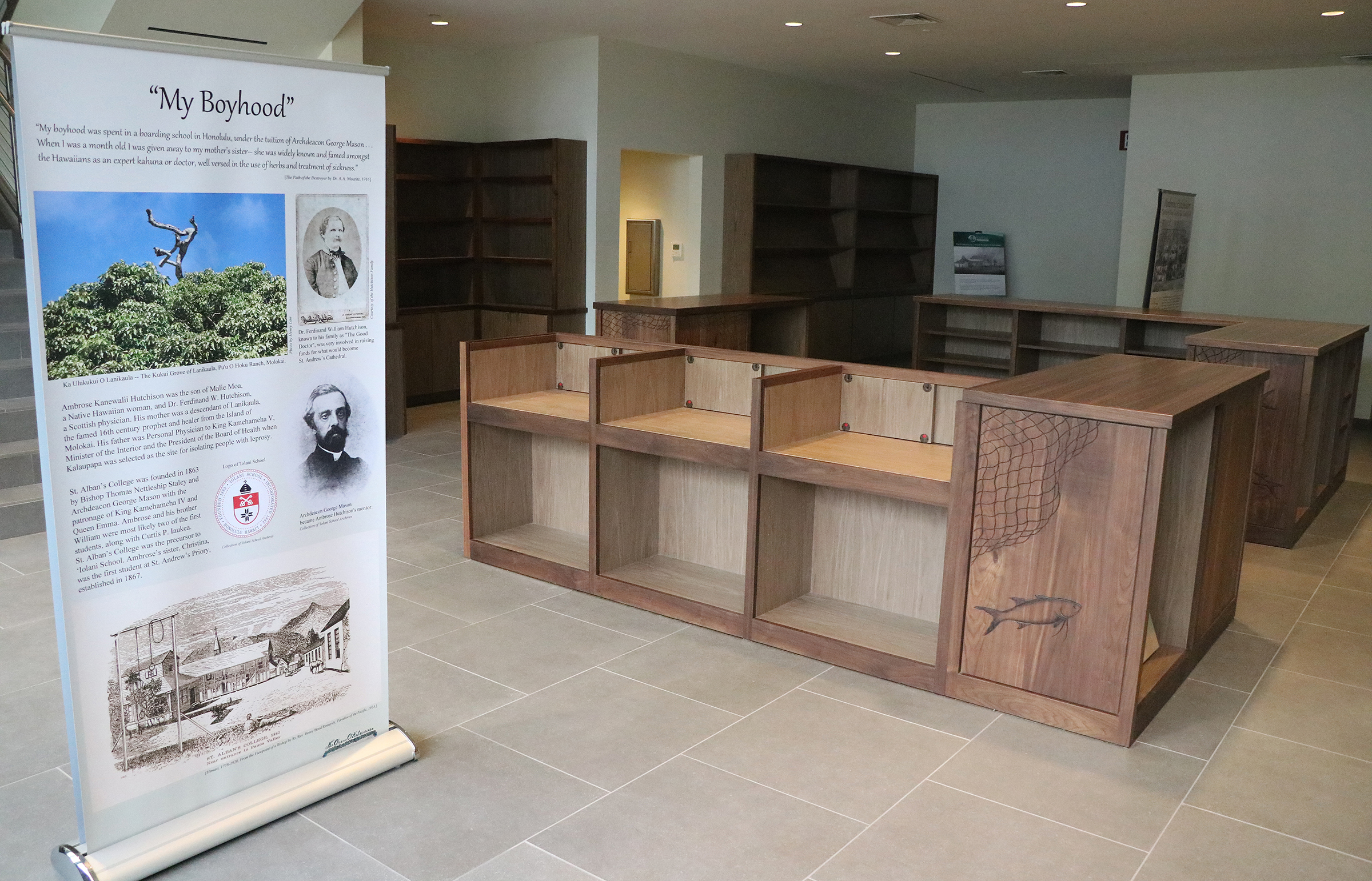 But the second floor is mostly empty. Permanent lighting, furnishings, art, audiovisual elements and other technology still need to be installed. Temporary signs show where different exhibits will be, starting with the story of St. Damien de Veuster and St. Marianne Cope and continuing into the history of Kalaupapa’s inhabitants over time.