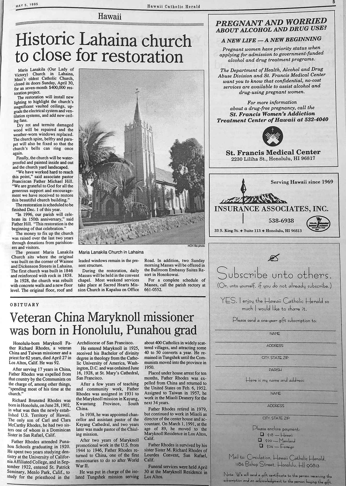 Maria Lanakila (Our Lady of Victory) Church in Lahaina, Maui’s oldest Catholic Church, closed its doors Sunday, April 30, for a seven-month $400,000 restoration project.