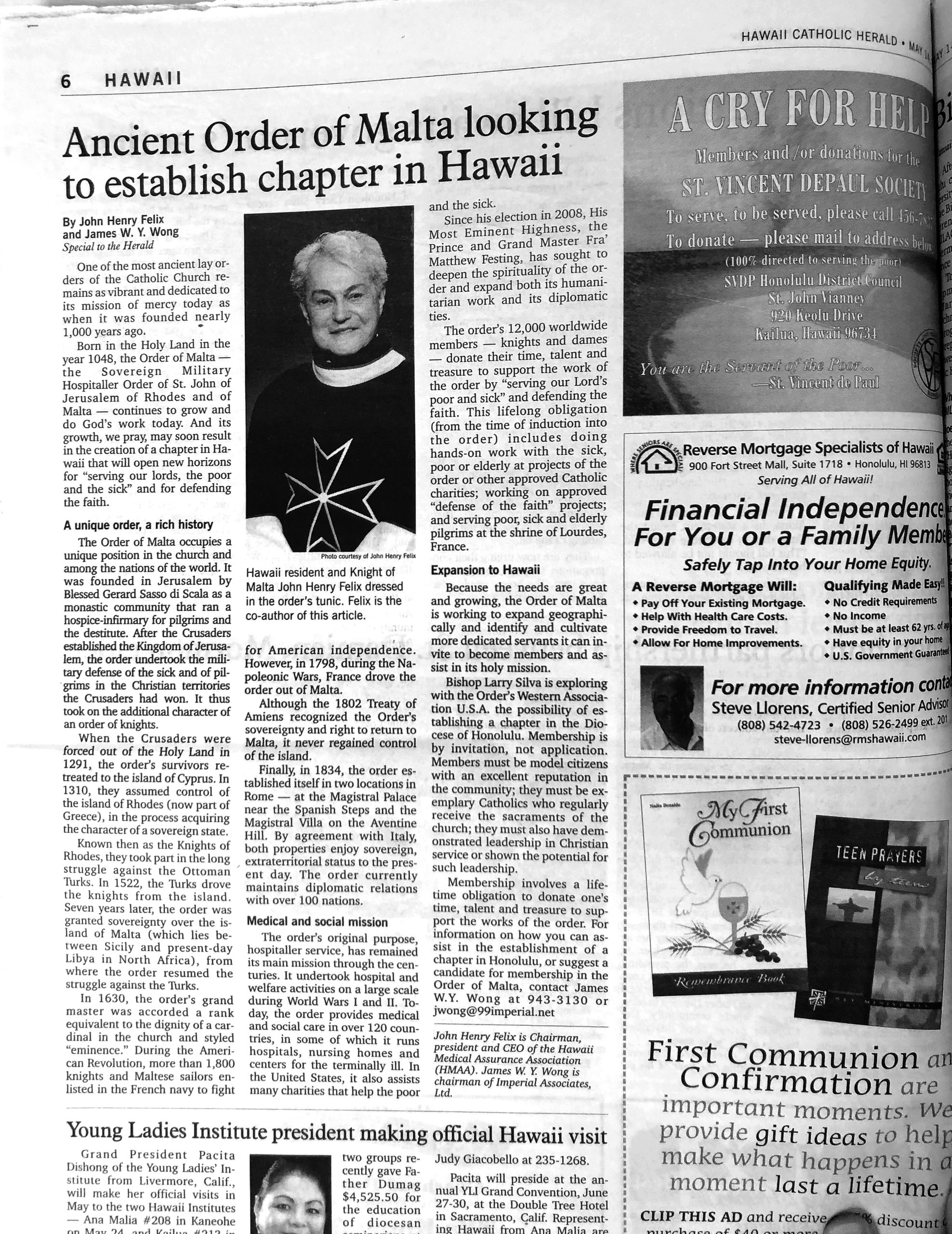 Ancient Order of Malta looking to establish chapter in Hawaii