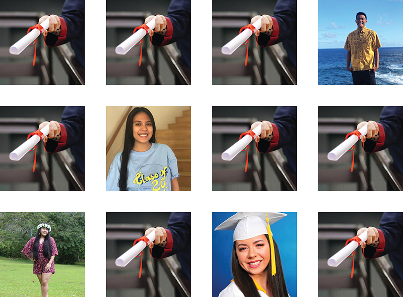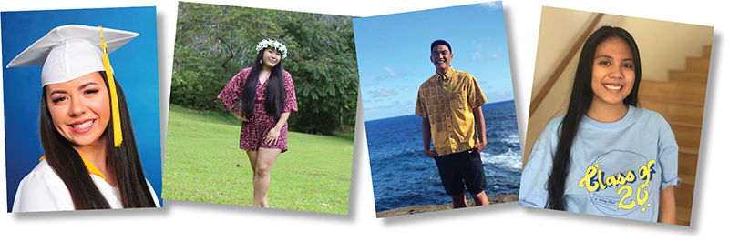 Class of 2020 Hawaii Catholic high school graduates will be receiving their diplomas following social distancing guidelines. Top row, Kenneth “KJ” Soong; middle row, Jocelyn Corpuz; bottom row, Chanah Tanioka and Aubree Davis. (Courtesy photos)