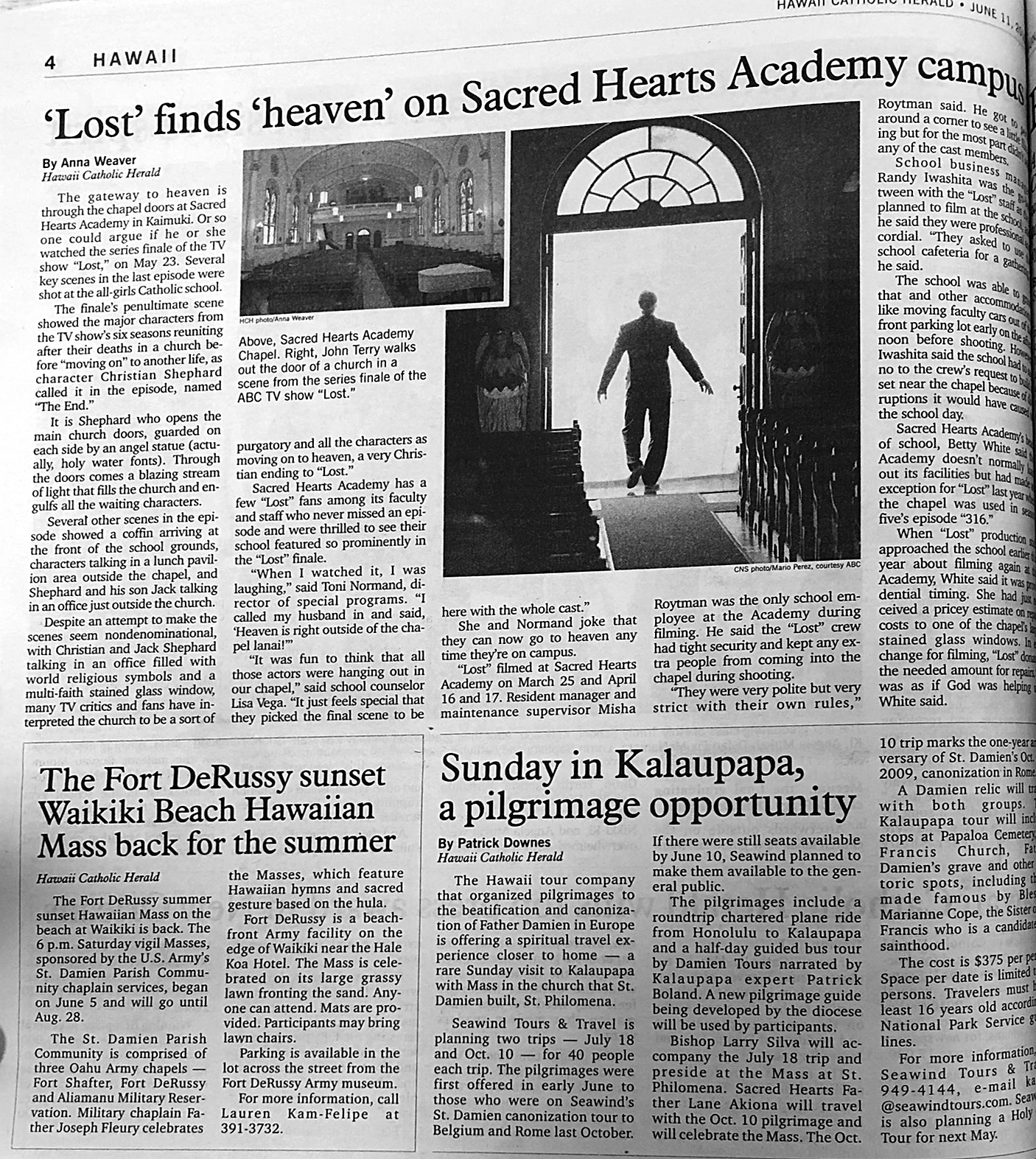 The gateway to heaven is through the chapel doors at Sacred Hearts Academy in Kaimuki. Or so one could argue if he or she watched the series finale of the TV show “Lost,” on May 23. Several key scenes in the last episode were shot at the all-girls Catholic school.