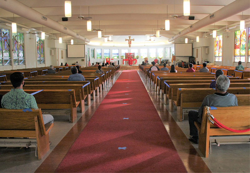 Because of social distancing rules, St. Elizabeth Parish in Aiea had added a second Saturday vigil Mass to the schedule as it anticipated a potential rush of parishioners coming back to church on Pentecost weekend when parishes were allowed to welcome worshippers after being shut down since March 17 to prevent the spread of the coronavirus.