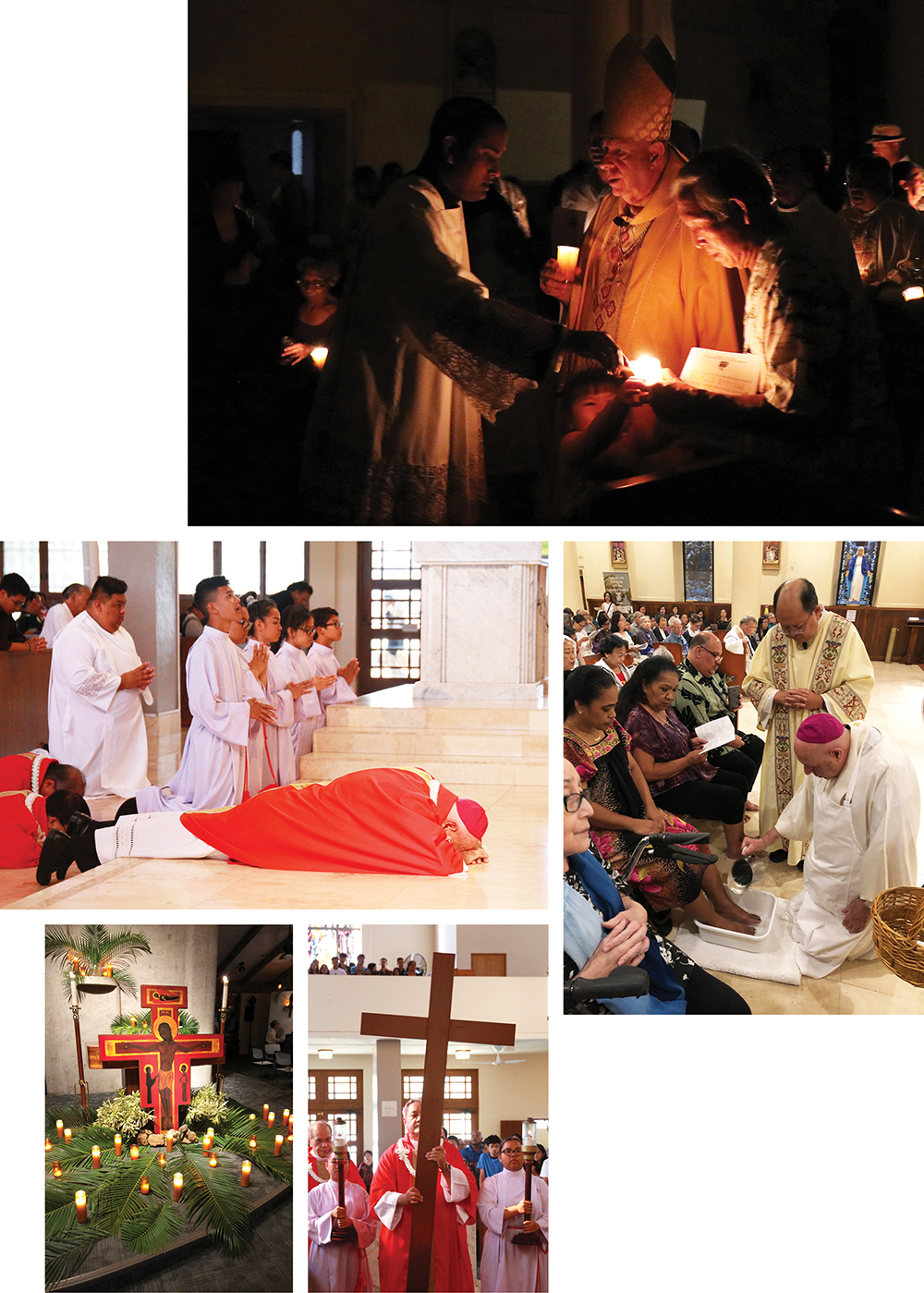 For “Scenes from Holy Week,” photo of Bishop Silva holding a candle at the cathedral’s Easter Vigil Mass, taken by Anna Weaver